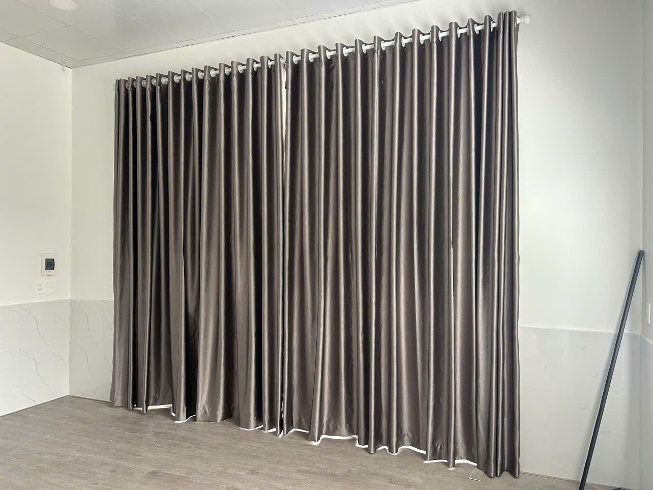 Hệ phụ kiện thanh nhôm: Thanh ray rèm hoặc thanh tròn xỏ vải vào, nhôm sơn tĩnh điện chống rỉ sét